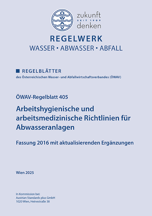 Das ÖWAV-Regelblatt 405 stellt den aktuellen Stand der hygienischen, arbeitsmedizinischen und arbeitswissenschaftlichen Anforderungen für Tätigkeiten auf Abwasseranlagen dar. Es bietet praxisnahe Empfehlungen für Vorsorge- und Schutzmaßnahmen, die auf Grundlage gesetzlicher Bestimmungen von Expert:innen aus Abwasserwirtschaft, Arbeitsmedizin und Arbeitshygiene zusammengestellt wurden. Ziel ist es, die Gefährdung des Betriebspersonals zu minimieren und die Gesundheit am Arbeitsplatz nachhaltig zu schützen.