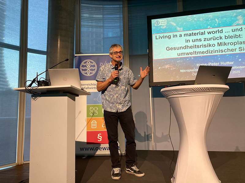 In seiner Keynote verdeutlichte Umweltmediziner Hans-Peter Hutter die Rolle von Mikroplastik als Transportmedium für Chemikalien und die Problematik zahlreicher Kunststoff-Additive. Vor dem Hintergrund einer weltweit auf über 8,3 Milliarden Tonnen angewachsenen Plastikproduktion wird die Dimension des Problems deutlich: Mikro- und Nanoplastik entstehen sowohl durch industrielle Herstellung als auch durch den Zerfall größerer Kunststoffteile und sind extrem langlebig. Über Abrieb, Abwasser und Luft gelangen sie in Böden, Gewässer und schließlich in die Nahrungskette. Dort reichern sie sich in Organismen an und können gesundheitliche Schäden wie Entzündungen, hormonelle Störungen und oxidativen Stress verursachen. Angesichts dieser Entwicklung ist ein grundlegendes Umdenken erforderlich, um langfristige ökologische und gesundheitliche Risiken zu vermeiden.