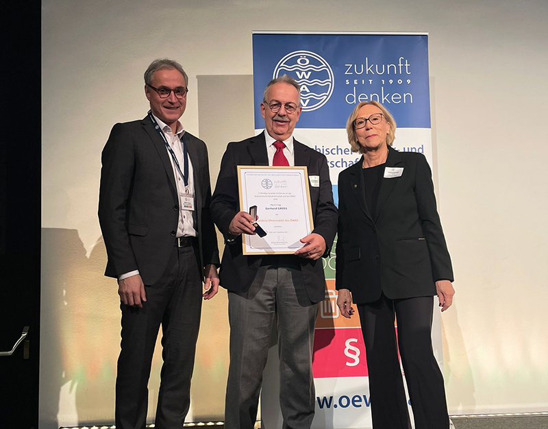Neuauflage des ÖWAV-Regelblatts 45 in Graz vorgestellt Der ÖWAV hat das ÖWAV-Regelblatt 45, das eine praxisorientierte Hilfestellung für die Planung und Beurteilung und den Betrieb von Versickerungsanlagen definiert, vollständig überarbeitet und am 2.12. in Graz präsentiert. Neue ÖWAV-Bereichsleitung "Betrieblicher Umweltschutz" Mit Anfang November hat DI Dr. Sonja Hofbauer die Bereichsleitung "Betrieblicher Umweltschutz" im ÖWAV übernommen. Goldene ÖWAV-Ehrennadel für Gerhard Gross Beim Versickerungsseminar am 2. Dezember in Graz wurde Ing. Gerhard Gross für seine langjährige und engagierte Mitarbeit im ÖWAV mit der Goldenen Ehrennadel ausgezeichnet.