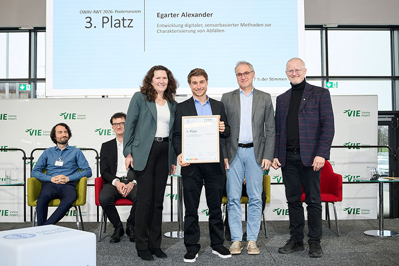 Im Rahmen der Österreichischen Abfallwirtschaftstagung 2026 Ende März fand auch heuer wieder die traditionelle Postersession statt, initiiert von der BOKU gemeinsam mit dem ÖWAV. Junge Wissenschaftler:innen präsentierten dabei ihre aktuellen Forschungsarbeiten und gaben spannende Einblicke in innovative Ansätze der Abfallwirtschaft.